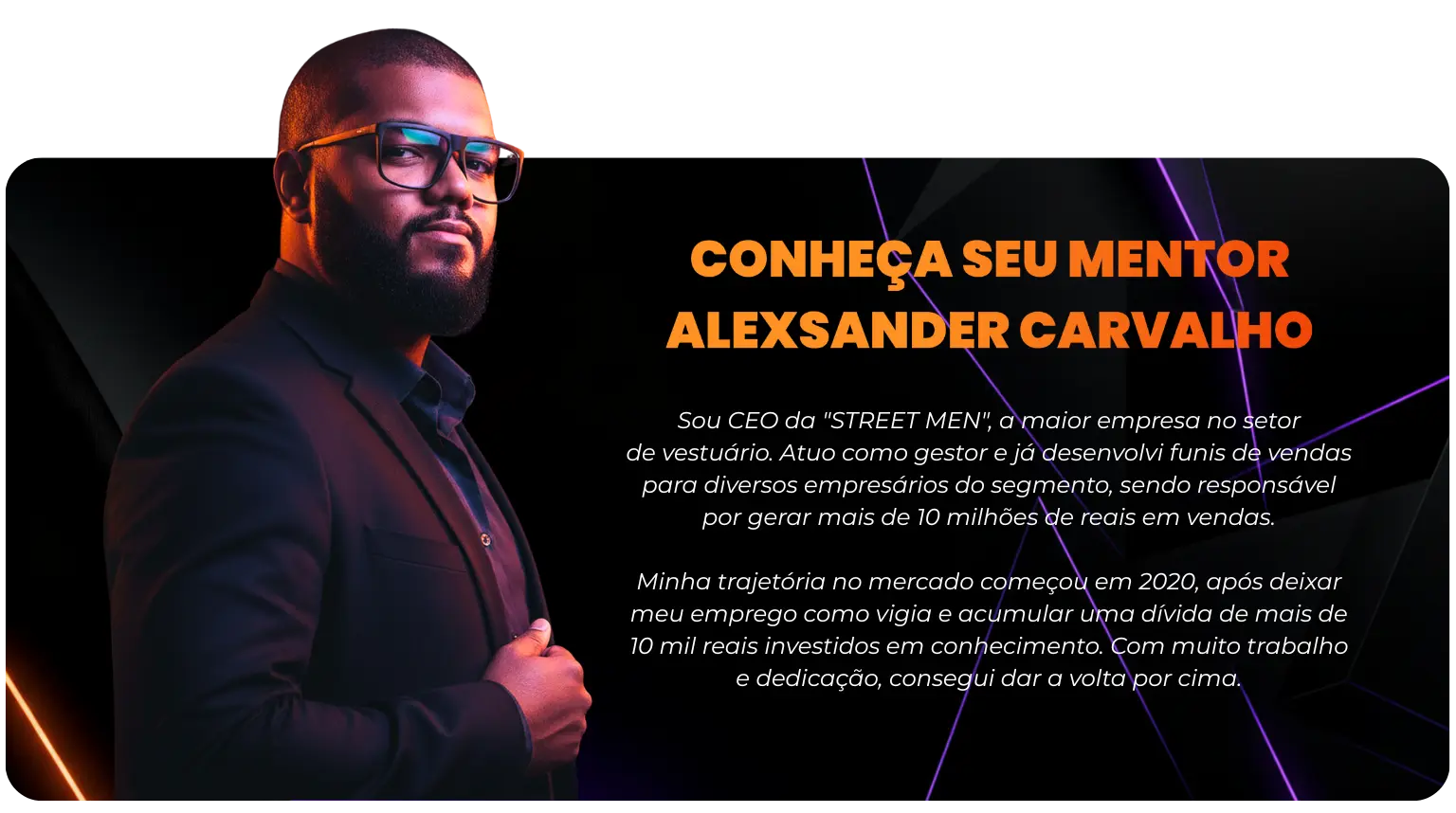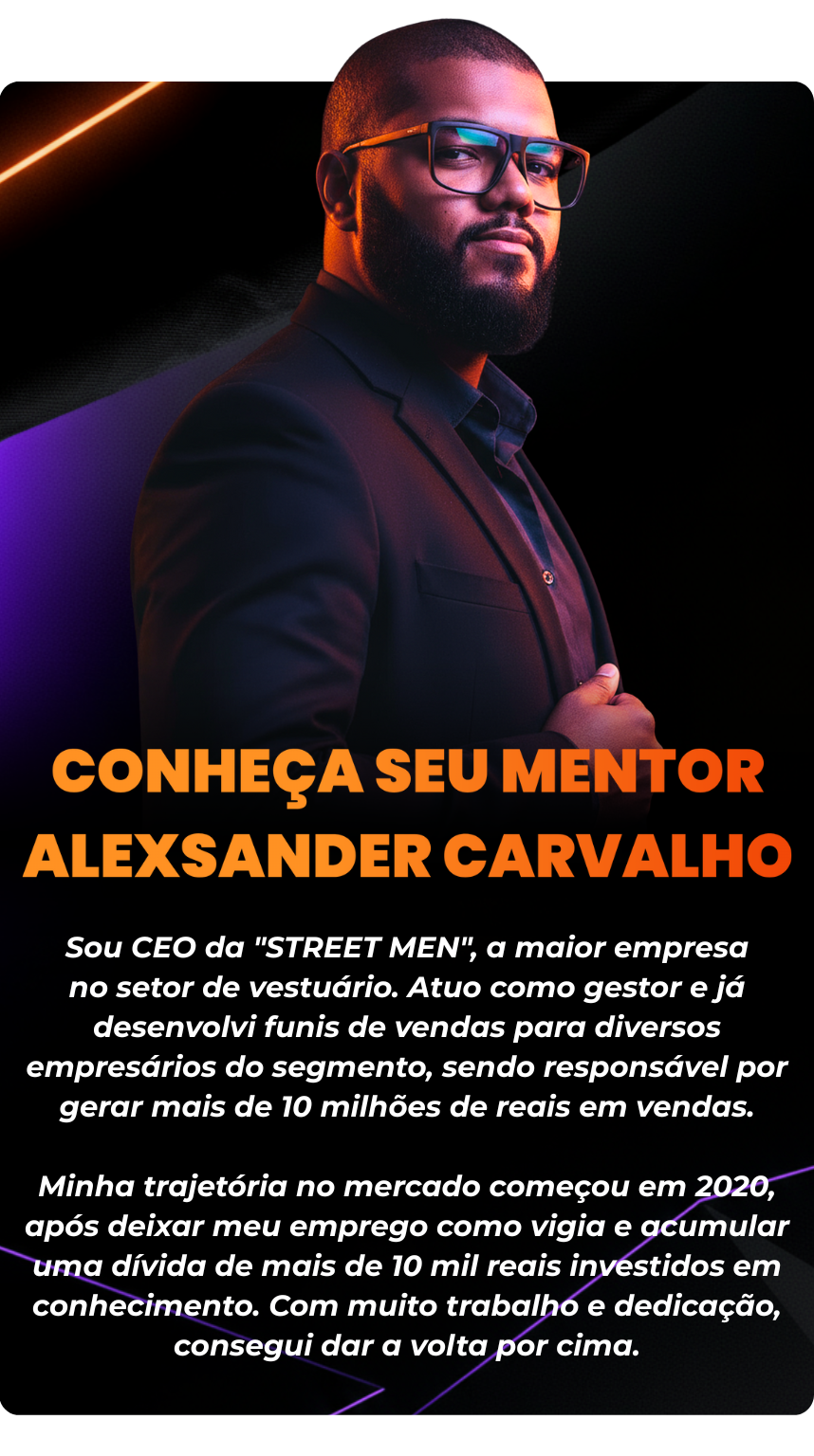 Vai poder conquistar uma renda de 10k/20k/30k/50k/100k por mês, sem depender de ninguém, sem perder tempo e sem investir fortunas. Tudo isso seguindo um simples passo a passo, já validado por centenas de alunos.
